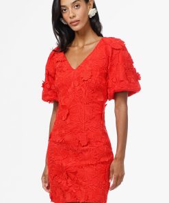 Adelyn Rae Women’s Haven Contrast Scalloped Textured Jacquard Halter Midi Dress | Ivory & Red