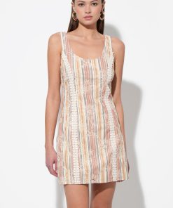 Adelyn Rae Women’s Haven Contrast Scalloped Textured Jacquard Halter Midi Dress | Ivory & Red