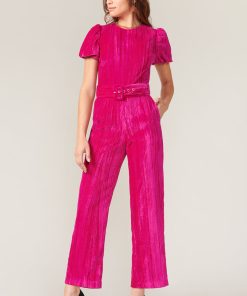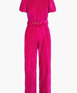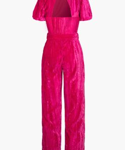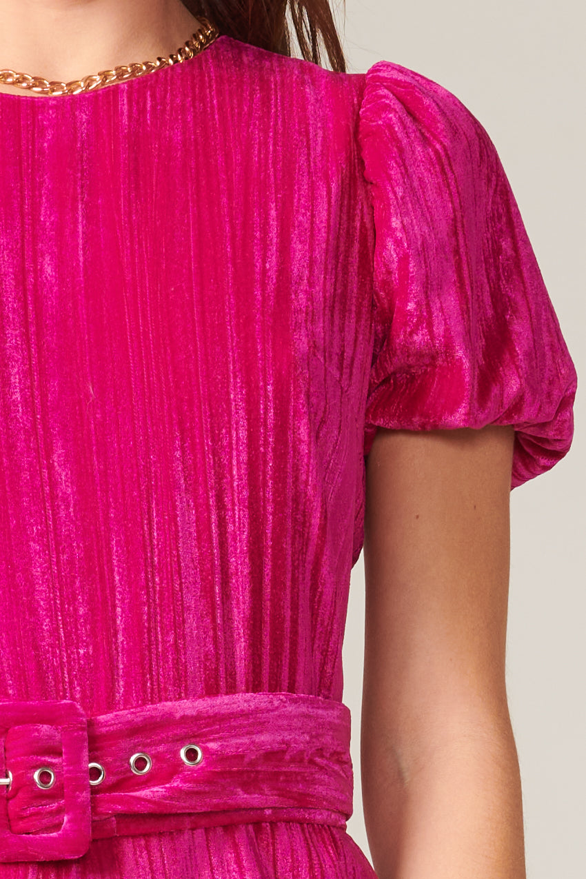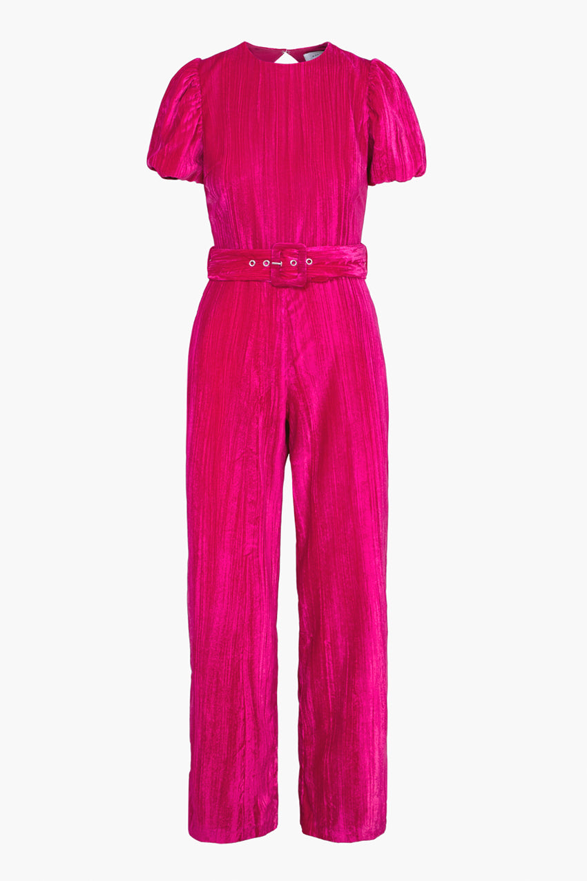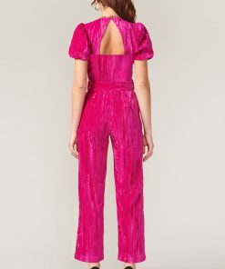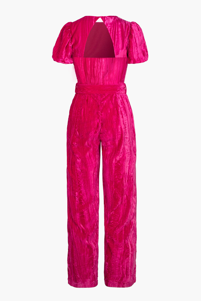 This textured velvet jumpsuit embraces the 70’s inspired glamour. Designed in a crew neckline, puff sleeves, belt and belt loops, a wide leg, and side pockets this jumpsuit will have you feeling groovy.