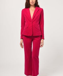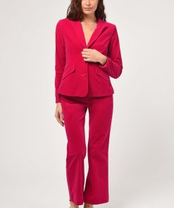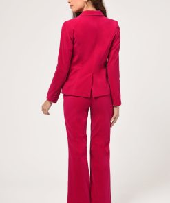 The Bella Velvet Blazer is a timeless wardrobe piece made from luxurious red velvet to give an effortless chic look. This exquisite blazer can be paired with matching pants for a complete look.