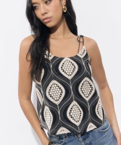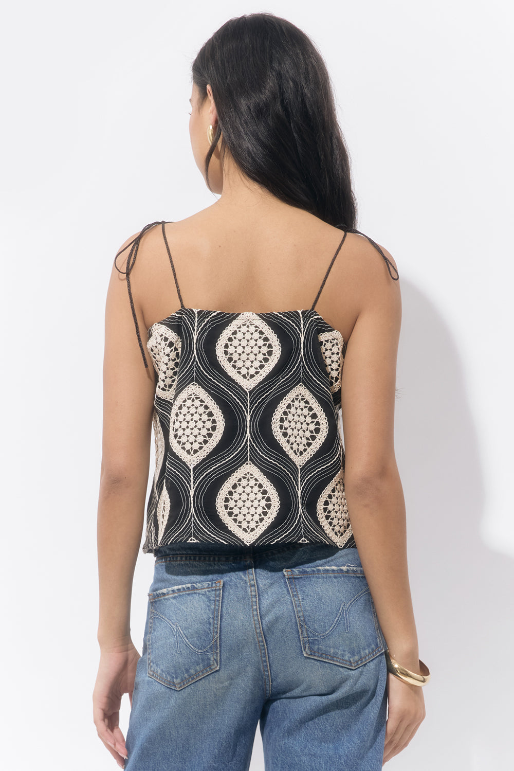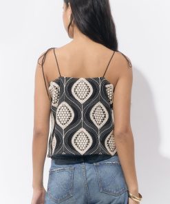 Adelyn Rae Women’s Camila Strappy Embroidered Top | Black & Cream