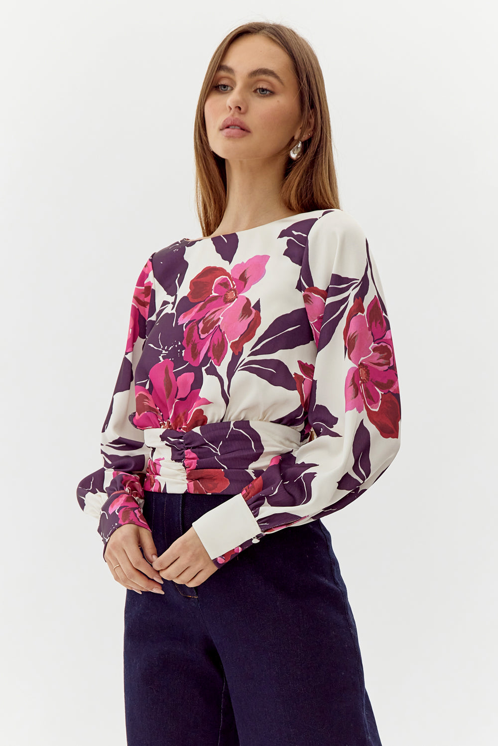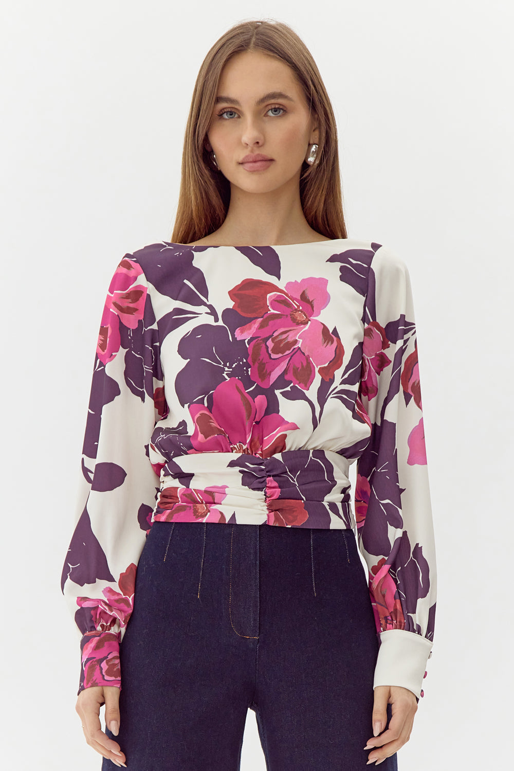 Adelyn Rae Women’s Charlene Smock Waist Blouse | Ivory Multi