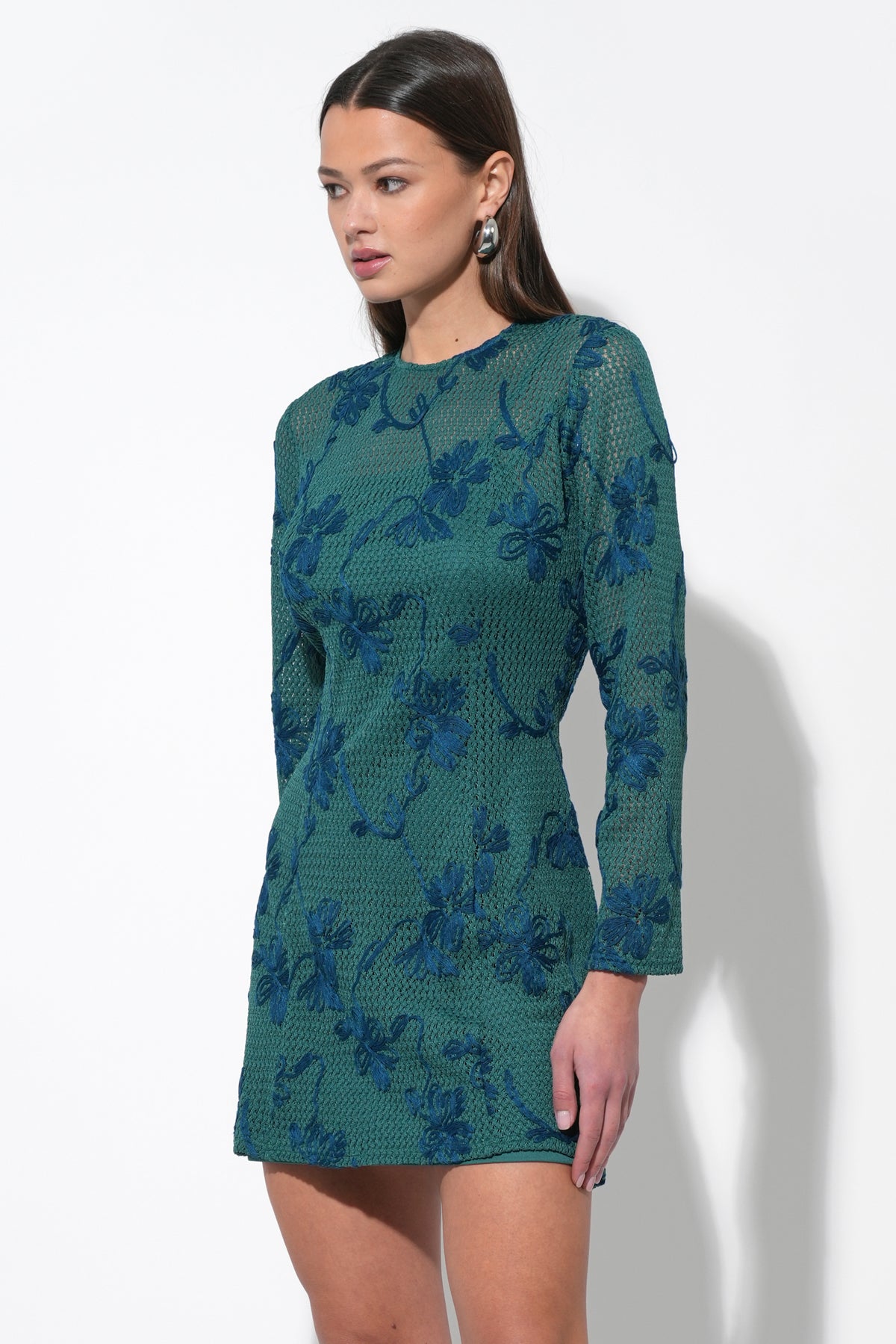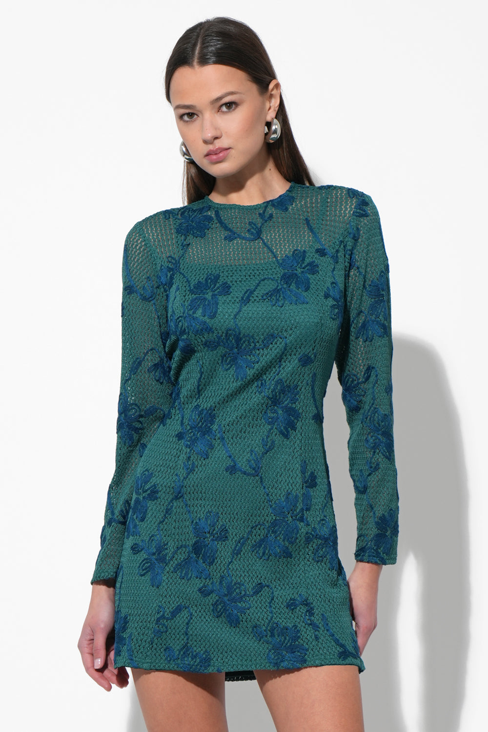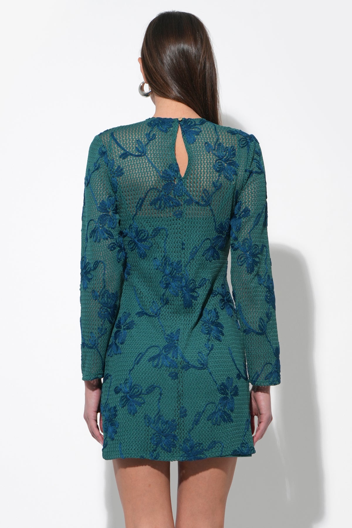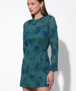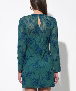 This delightful mini dress captivates in a vibrant pink hue, adorned with exquisite crochet lace detailing that adds a touch of delicate charm. It features a flattering V-neckline with a lovely scalloped edge, complemented by sweet flutter sleeves.