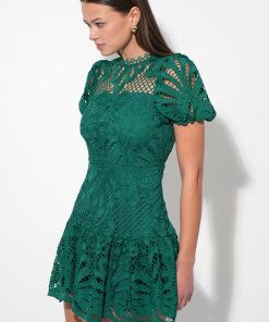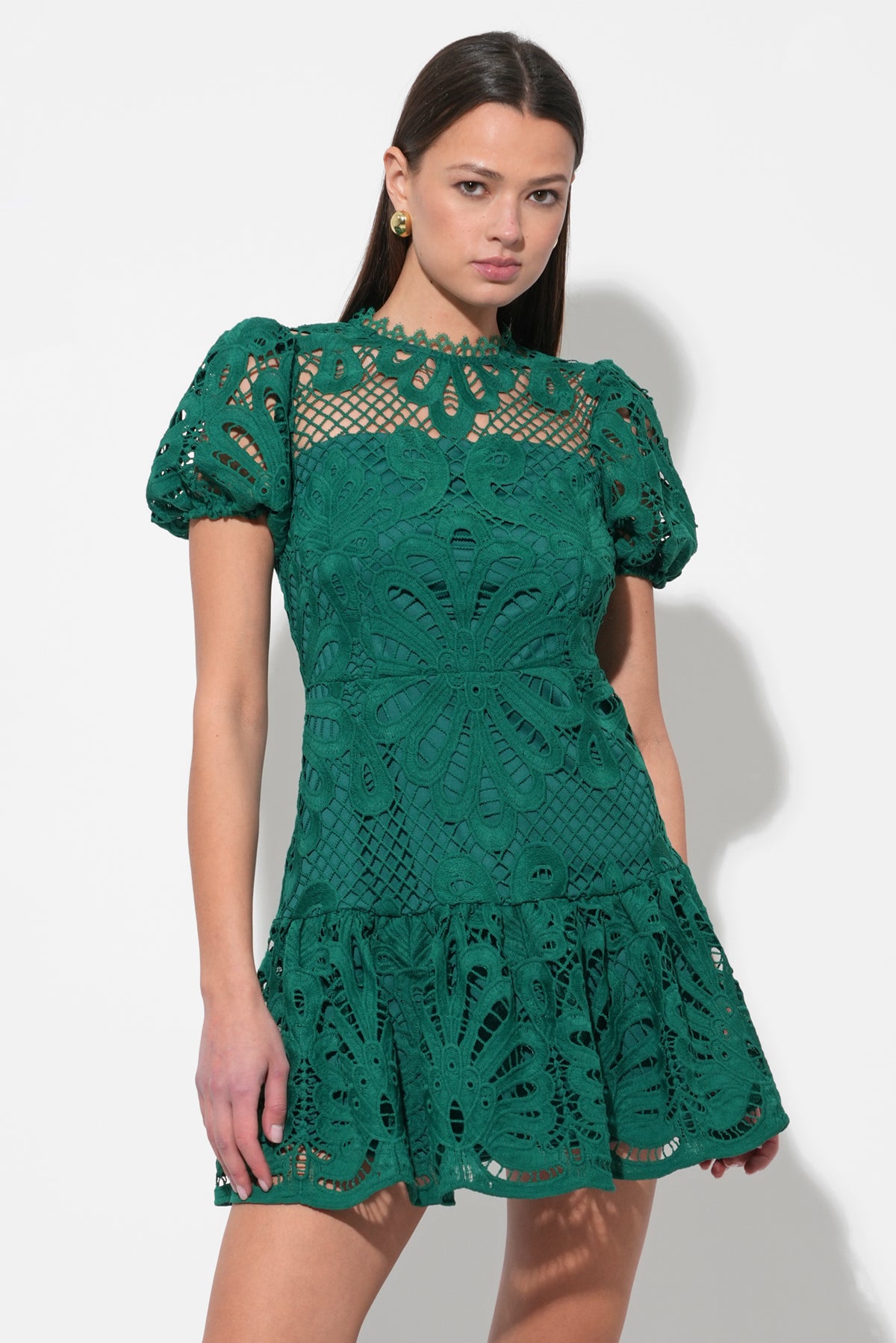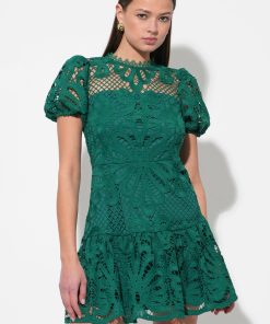 Adelyn Rae Women’s Clarisse A Line Placement Lace Dress | Emerald Green