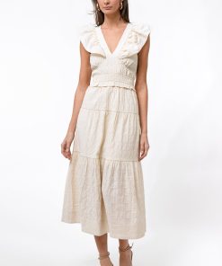 This stunning red mini dress features a unique halter neckline adorned with an array of meticulously crafted 3D floral appliques, creating a beautiful and tactile texture. The dress flows into a flattering pleated A-line silhouette, offering graceful movement and a comfortable fit.