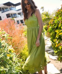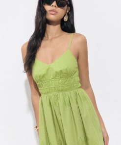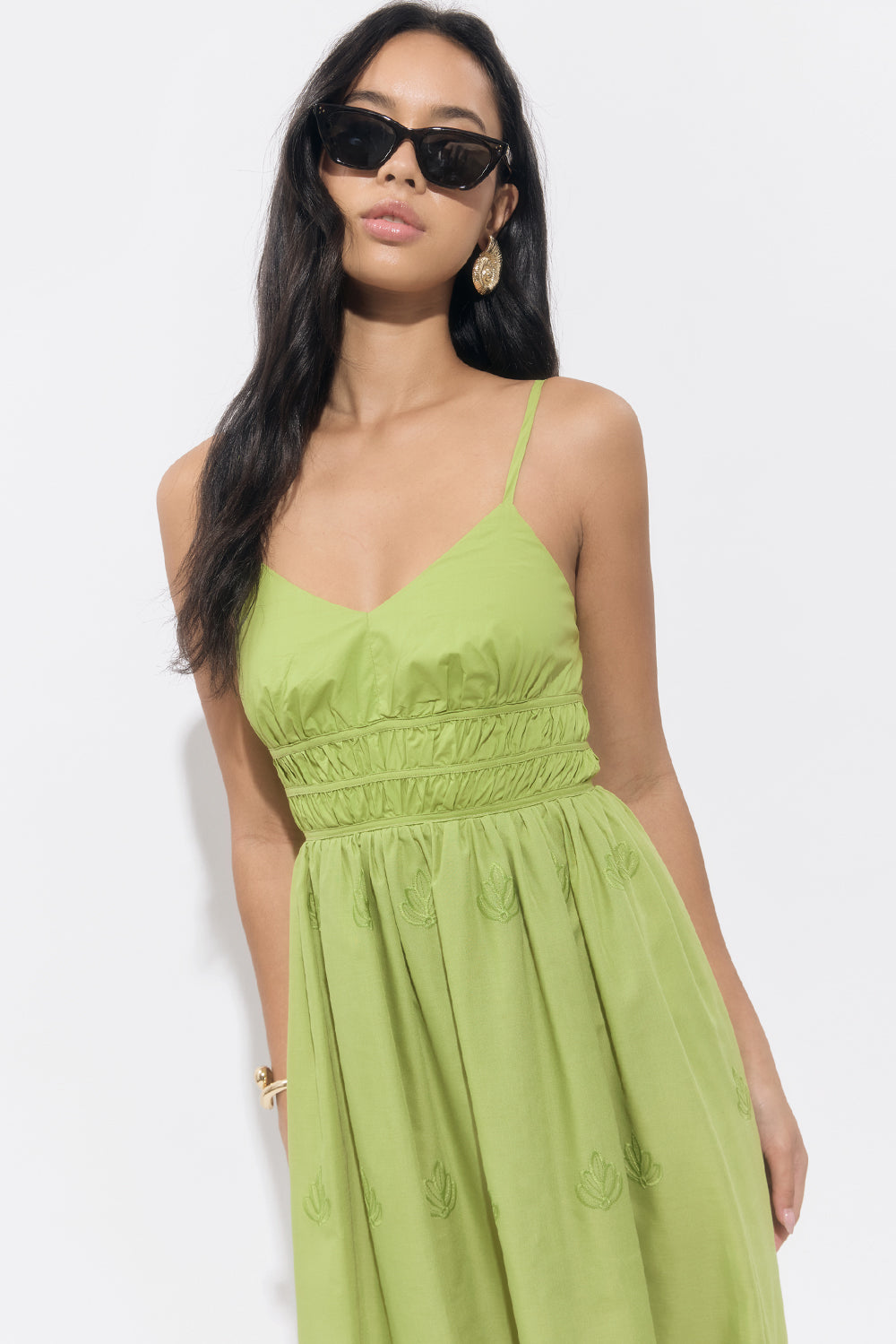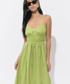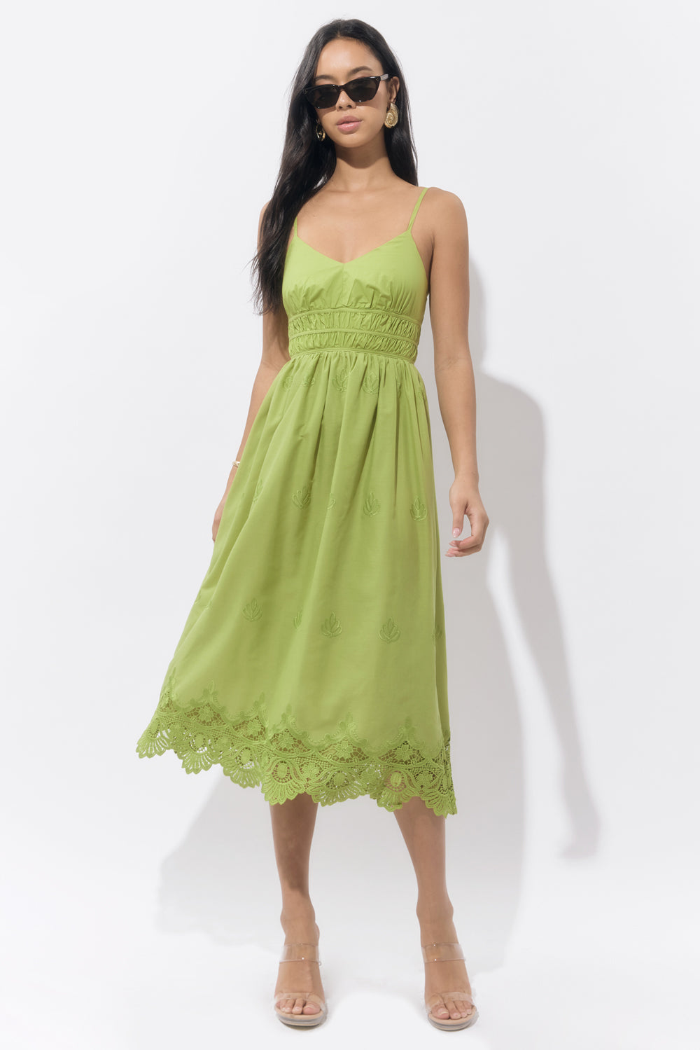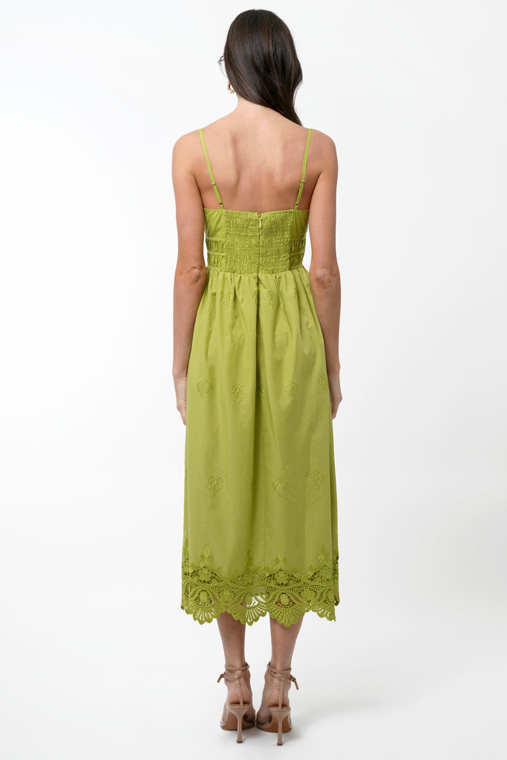 Adelyn Rae Women’s Danna Strappy Embroidered Midi Dress | Chartreuse