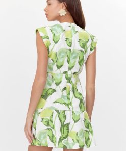 This floral mini dress stands out with it’s classy and casual silhouette. Imagined in green and white shades, the dress features a V-neck with a twist front detail and a dropped waist line. Adding shape are folded cuffs at the shoulder.