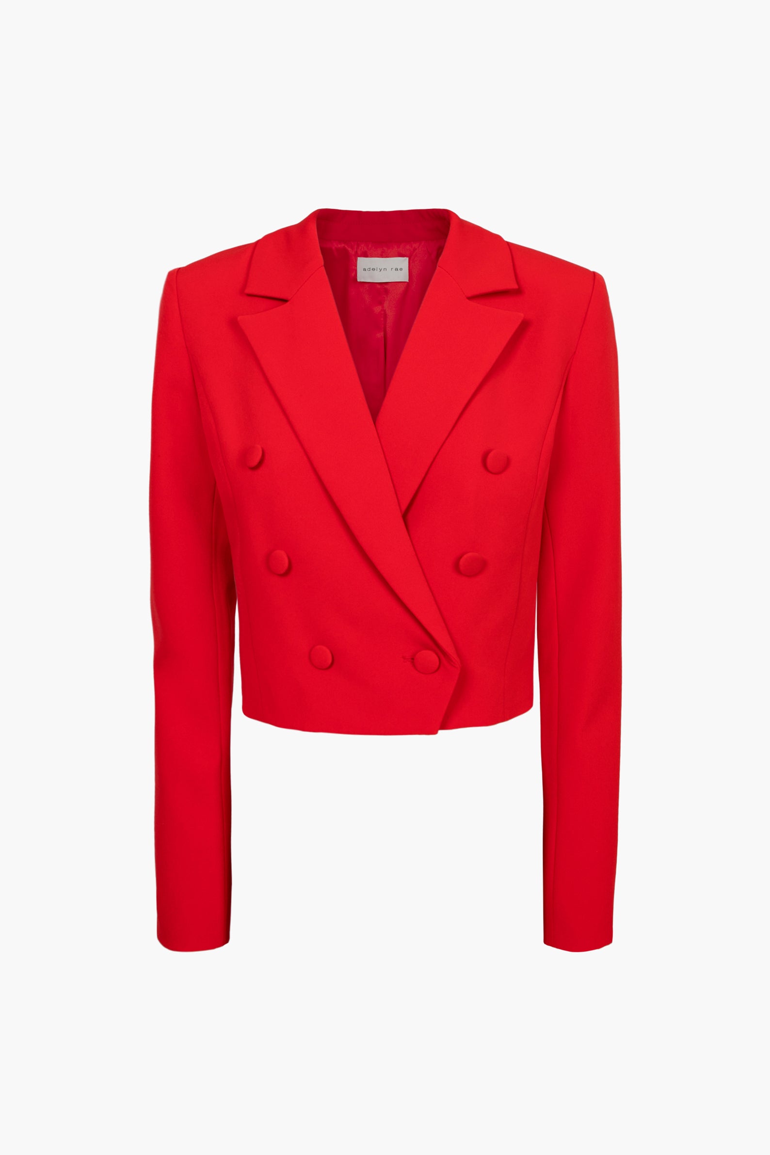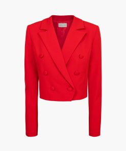 This cropped blazer presents the perfect blend of professional and contemporary style with this double breasted cropped blazer. Cut for a flattering silhouette, it features a notched lapel and sleek open front design. Upgrade any look with sophisticated chic.