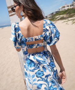 The Halton Dress is designed in a vivid blue floral print with a flattering square neckline, voluminous puff sleeves, and a fitted bodice that flows into a flirty A-line mini. But the real showstopper? The double cutout back that reveals just enough.