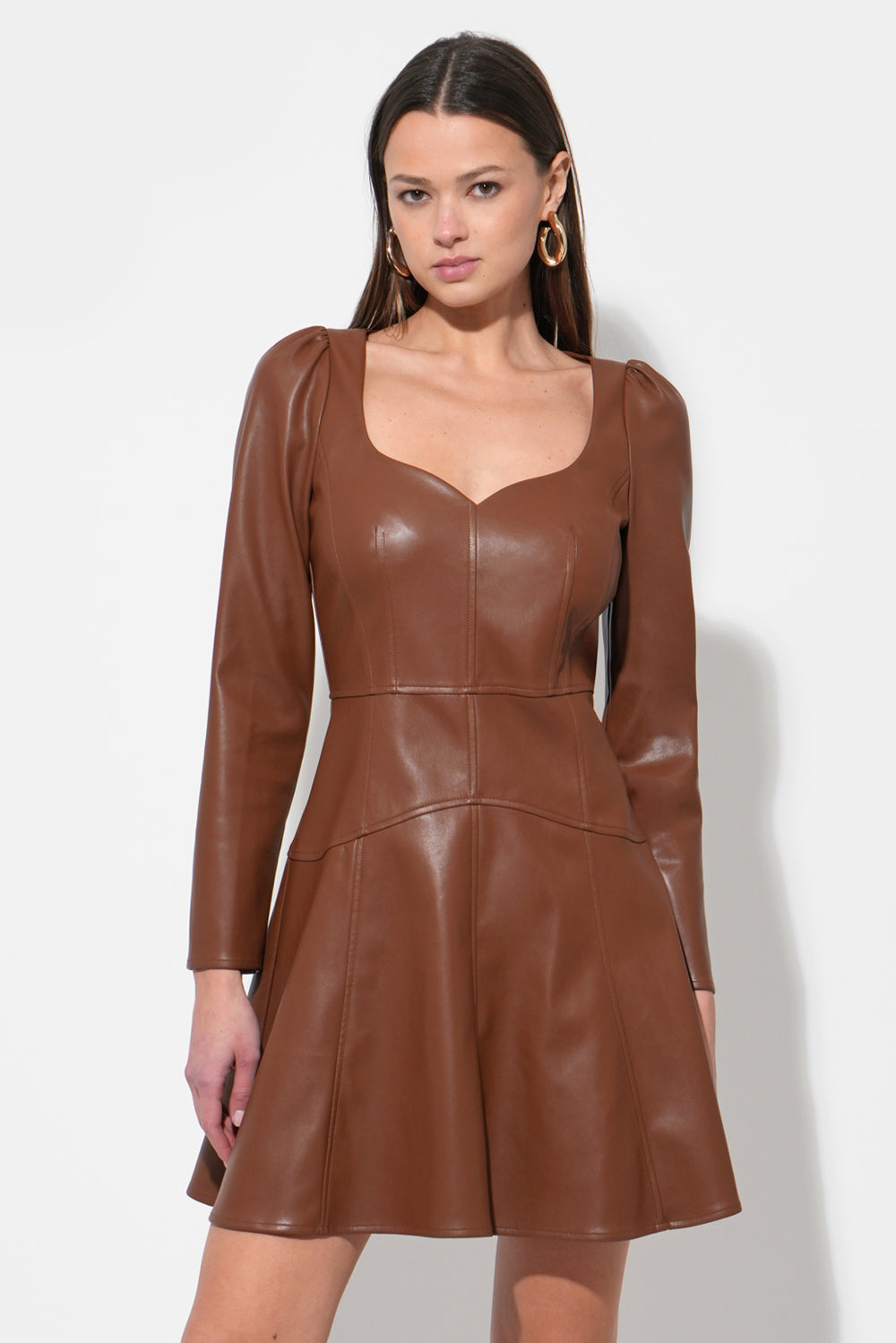 It features a unique one-shoulder neckline with a wide strap and a flattering ruched bodice with an adjustable tie detail at the waist. The wrap-style skirt adds a dynamic and flirty touch, creating a captivating and figure-hugging silhouette. The Kaleen dress is a bold and fashionable choice for your next night out.