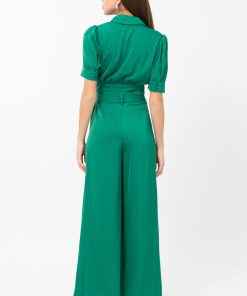 Rendered in a vibrant green, these high waist trousers are adorned with a belt and a wide-legged structure. Part of a matching set with the Keva Blouse.