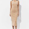 Sleeveless mini dress featuring a tie waist belt. The polka dot pattern is contrasted with smaller dots on the sides. Finished with a keyhole button in the back.