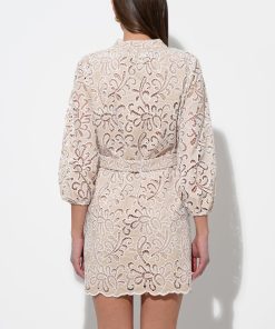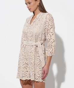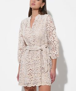 Adelyn Rae Women’s Lina Embroidered Eyelet Scalloped Belted Dress | Natural