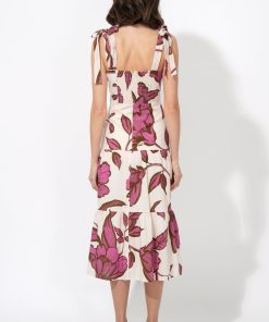 Adelyn Rae Women’s Melrose Shoulder Tie Printed Maxi Dress | Cream & Pink