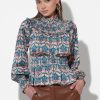 Sleeveless floral blouse featuring a scallop hem and a buttoned closure in the back. The fabric is pleated for extra texture. Style casually or elegantly.