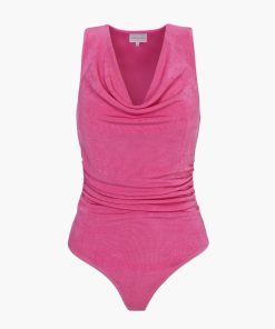 Adelyn Rae Women’s Misha Cowl Neck Knit Bodysuit | Deep Pink