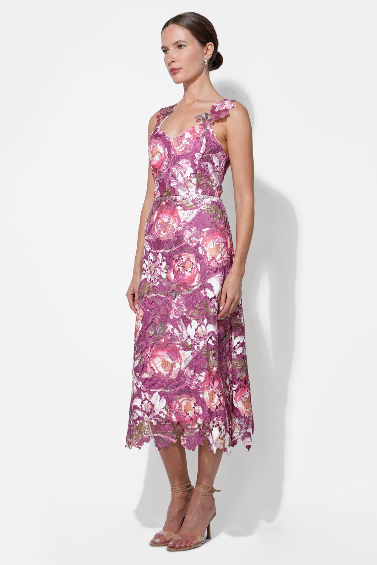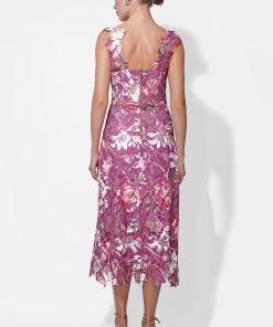Adelyn Rae Women’s Prudence Floral Lace Midi Dress | Magenta