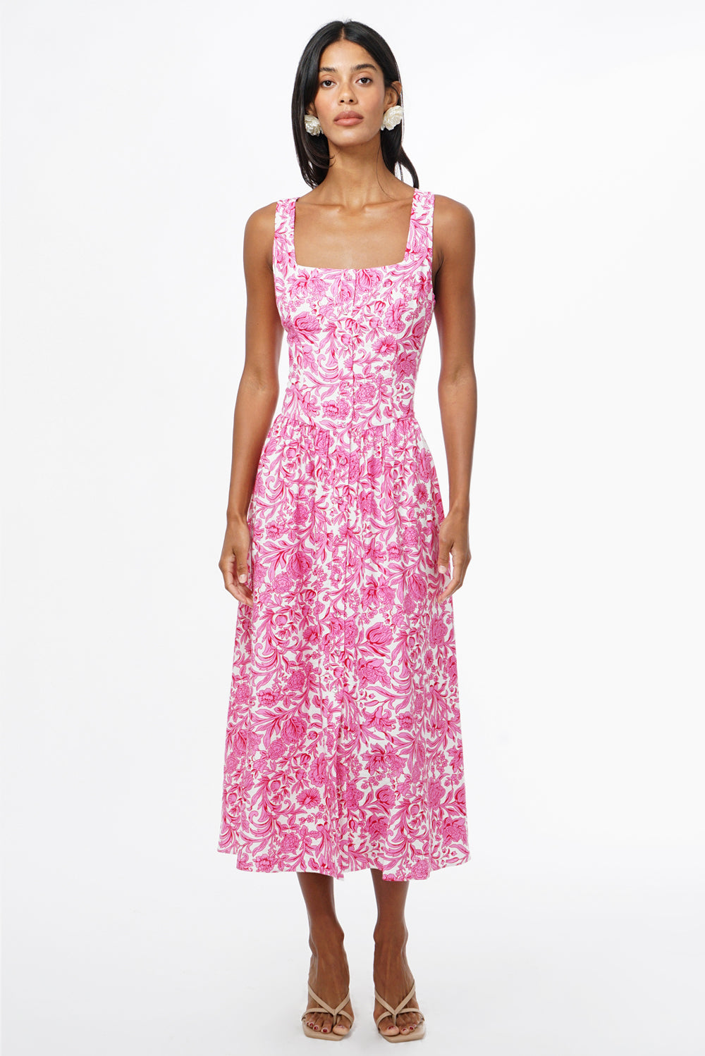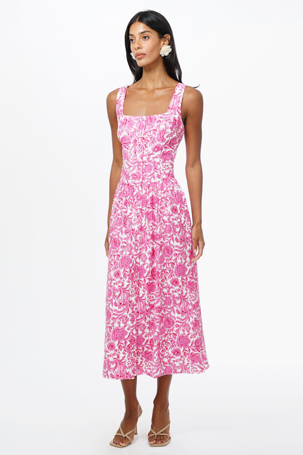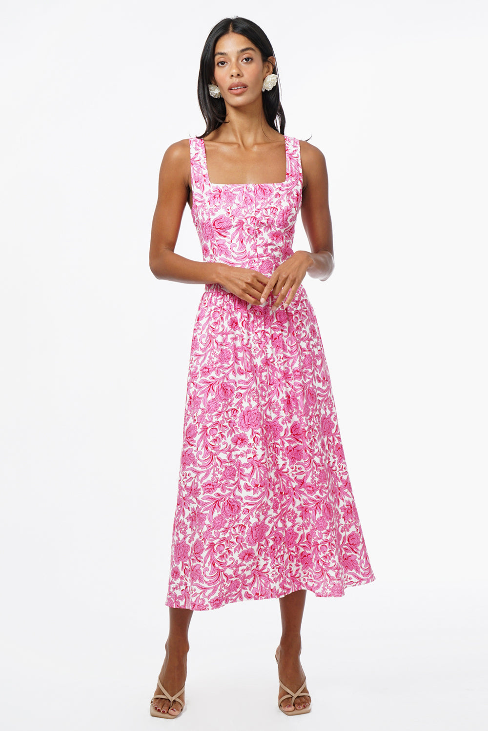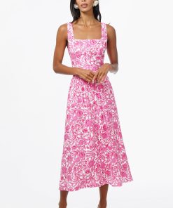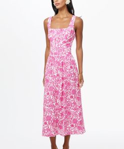 Adelyn Rae Women’s Rina Ballerina Floral Printed Midi Dress | Pink