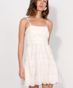 Featuring a delicate scalloped hem, flattering tiered silhouette, and playful eyelet embroidery, this flirty mini checks all the boxes. The adjustable spaghetti straps and smocked back ensure a comfy, just-right fit so you can move (and dance) freely.