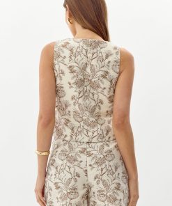 Designed in matching separates, this button-front top is thoughtfully designed for an interseasonal wardrobe. The design is cut in a refreshing, cropped silhouette and a natural palette. Dress up or down and for a summery statement, pair with the Sheena Jacquard Shorts.