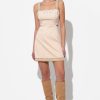 This polka dot slip dress shows off romantic ruffle details along the chest and a rose applique. Installed with adjustable straps.