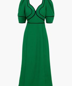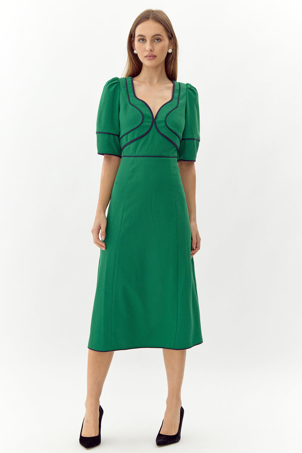 Adelyn Rae Women’s Sonia Contrast Piped Midi Dress | Emerald