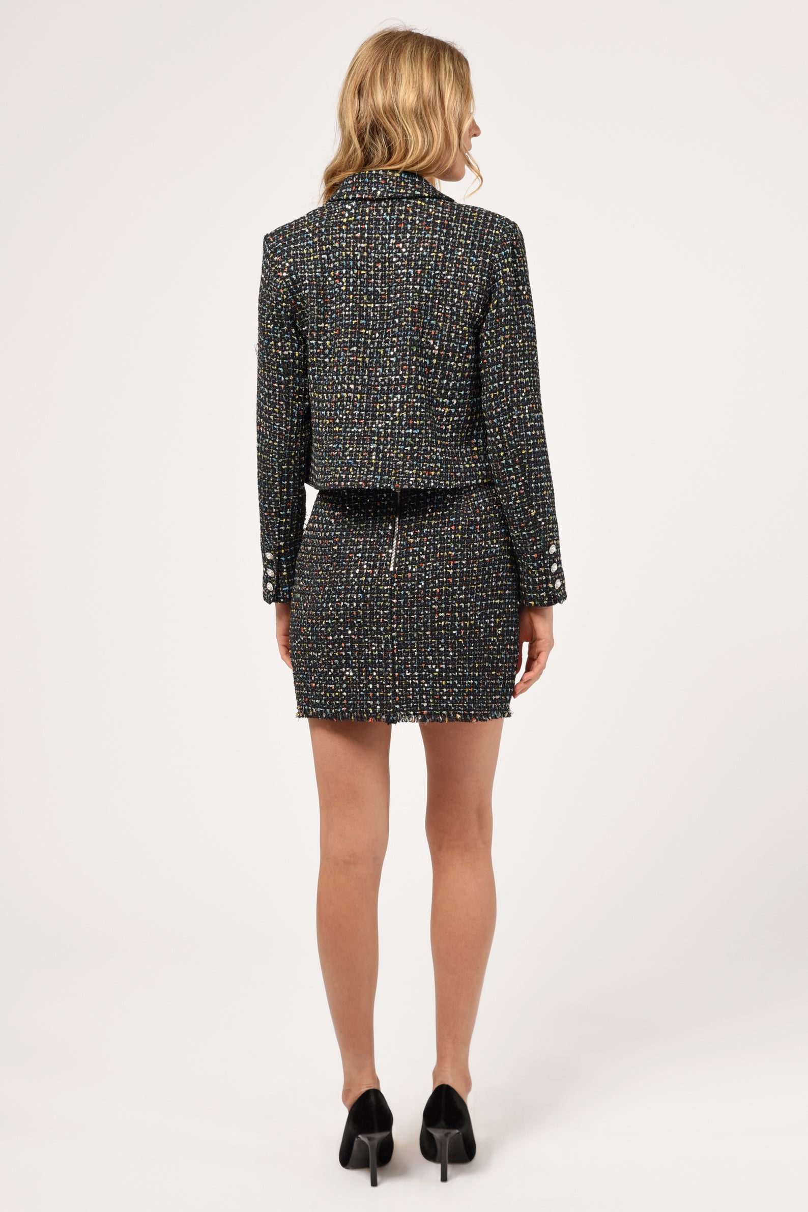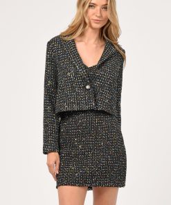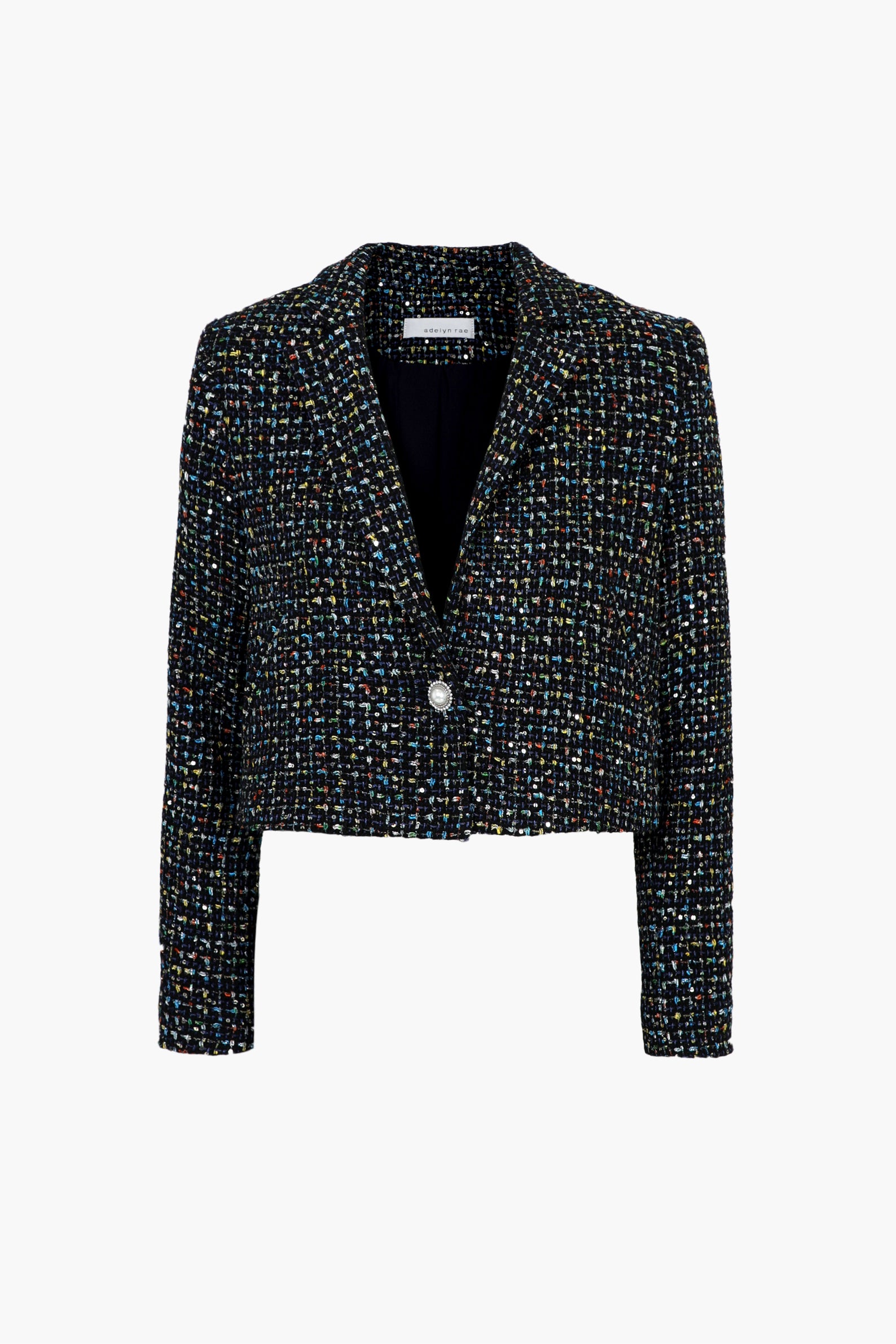Look sharp in the Vicky Tweed Cropped Blazer. This chic, cropped blazer is the perfect way to add a touch of color to any outfit. With a variety of bright color specs, you’ll be sure to make a flashy impression no matter where you go.