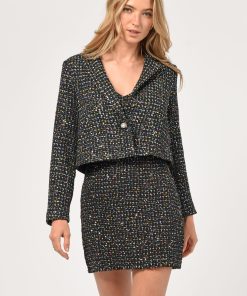 Look sharp in the Vicky Tweed Cropped Blazer. This chic, cropped blazer is the perfect way to add a touch of color to any outfit. With a variety of bright color specs, you’ll be sure to make a flashy impression no matter where you go.